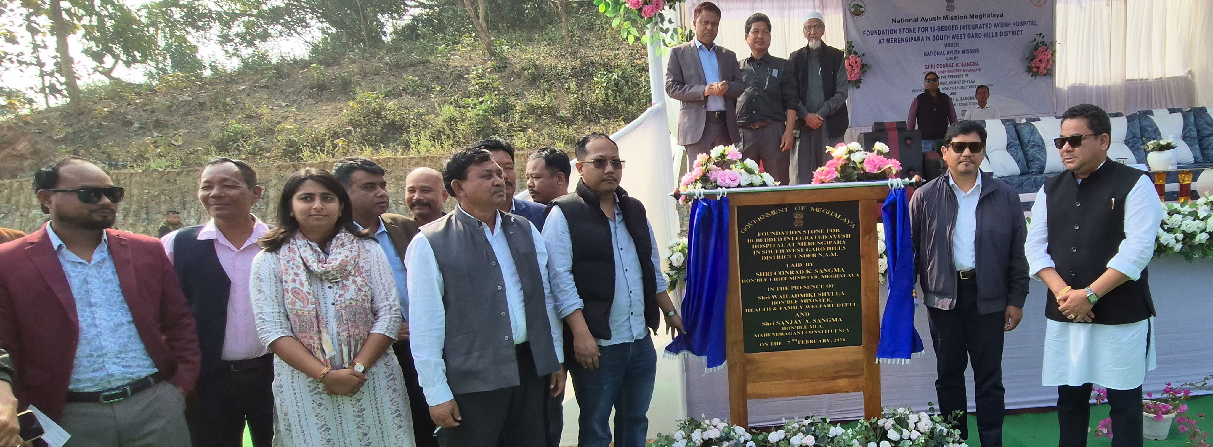 Ampati, February 7, 2026: Meghalaya Chief Minister Conrad K Sangma laid the base for the 10 bedded Integrated Ayush Hospital at Meringipara in South West Garo Hills on February 7, 2026. The base was laid in the presence of Mahendraganj MLA Sanjay A Sangma and Salmanpara MLA Ian Botham K Sangma.