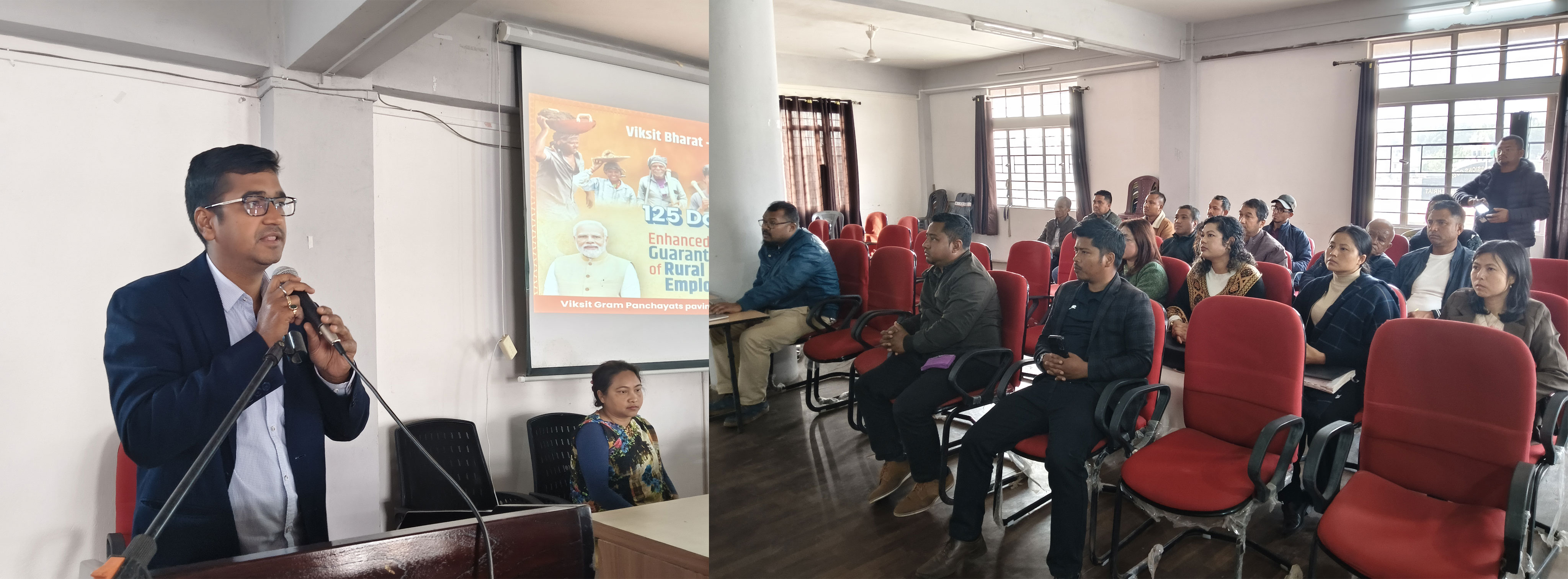 Smti. Sutnga while presenting the overview of the "VB - G RAM G" took the session in sensitizing the attending officials on its focus on empowerment, growth convergence and saturation for a prosperous and resilient rural Bharat. She also stated that VB G RAM G laid emphasis on water security, core rural infrastructure, livelihood related infrastructure, generating employment and enabling panchayats to contribute to the circular economy etc.