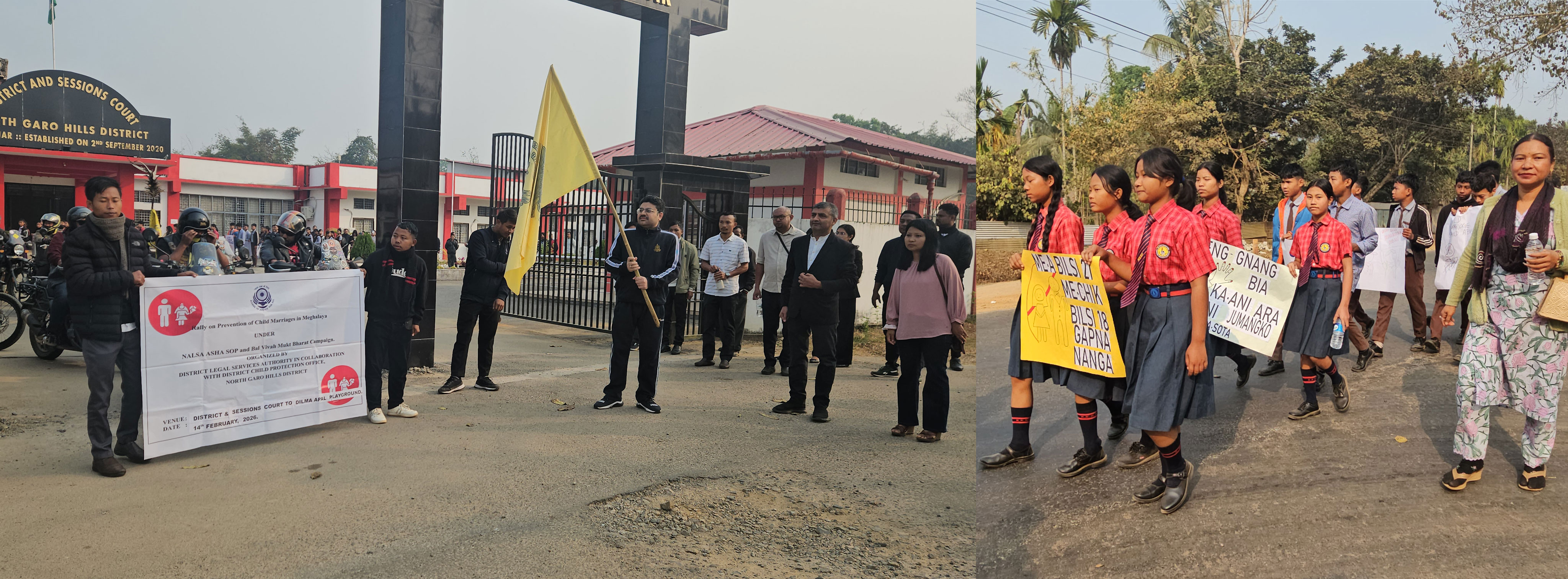 Resubelpara, February 14, 2026: The District Legal Services Authority (DLSA), North Garo Hills, organised a rally today at Mendipathar to raise awareness on the prevention of child marriage under the NALSA ASHA SOP and Bal Vivah Mukt Bharat initiative.