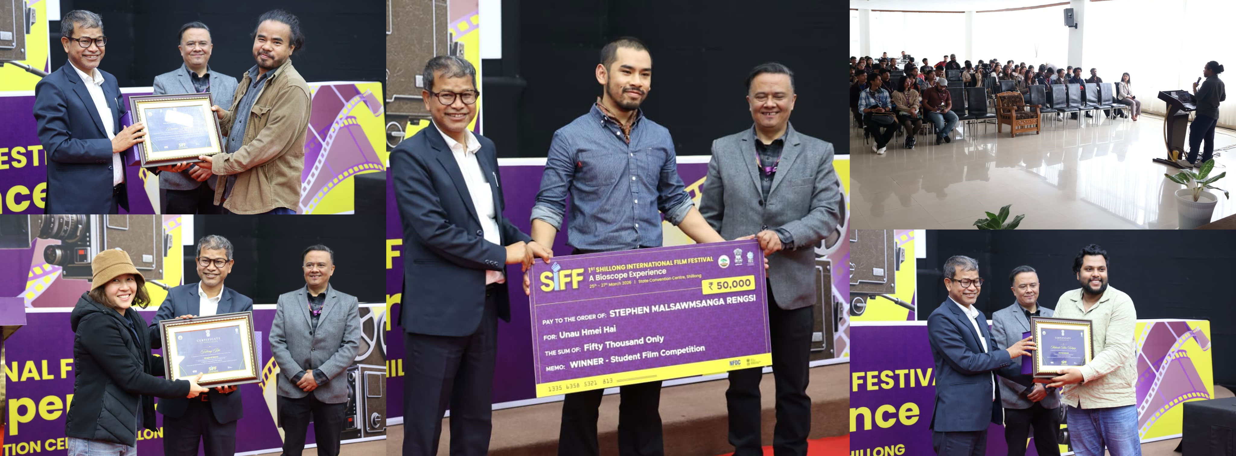 During the ceremony, the chief guest also presented cash awards to winners of the SIFF Student Film Competition. Kyrshanborlin Wahlang received the second runners-up prize for Ki Thied along with a cash award of ₹20,000. The first runners-up award went to Kyrshanborlang Khardewsaw for The Paper Boat, with a cash prize of ₹30,000. The top honour was awarded to Stephen Malsawmsanga Rengsi for Unau Hmei Hai, who received a cash prize of ₹50,000.The festival concluded on an optimistic note, with participants expressing enthusiasm for future editions and a renewed commitment to the art of filmmaking and storytelling.