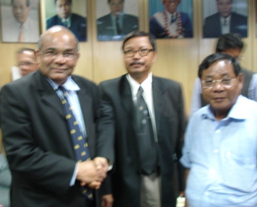Meghalaya Chief Secretary, Mr R Chatterjee shakes hands with President of PHFI, Prof K S Reddy after signing of the MoU between the Govt of Meghalaya and the PHFI at the Main Sectt Conf hall on June 9, 2008