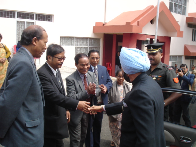 Dr S S Sidhu being received by the CM, Dr Donkupar Roy along with Dy CMs Mr H S Lyngdoh and Mr T D Shira alongwith Speaker Mr B M Lanong at the Assembly prior to his address in the House on March 24, 2008